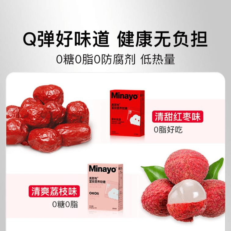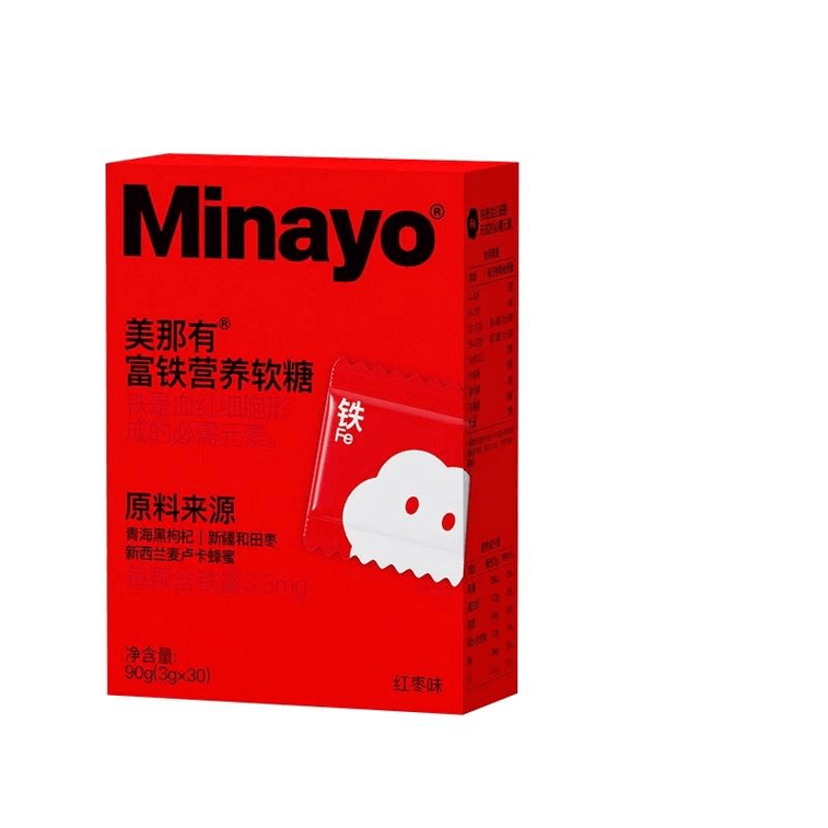 【중국에서 직접 우편】미나유 철분이 풍부한 소프트 캔디 원치 붉은 대추 맛 90g*1 상자