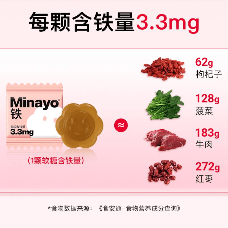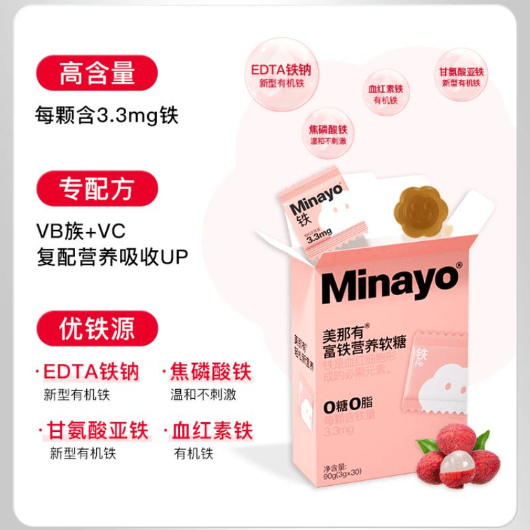 [중국 직송] 미국 미나요우 철분이 풍부한 소프트 캔디 원기 리치맛 90g*1상자