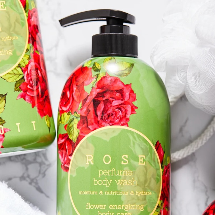 한국산 기고테 로즈향 샤워젤 750ml: 부드럽게 세정해주고 산뜻하고 은은한 장미향을 남깁니다.