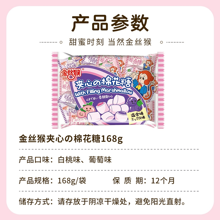 【중국 직송】 골든 몽키 마시멜로 168g*1봉지 백도와 포도 혼합맛 캔디