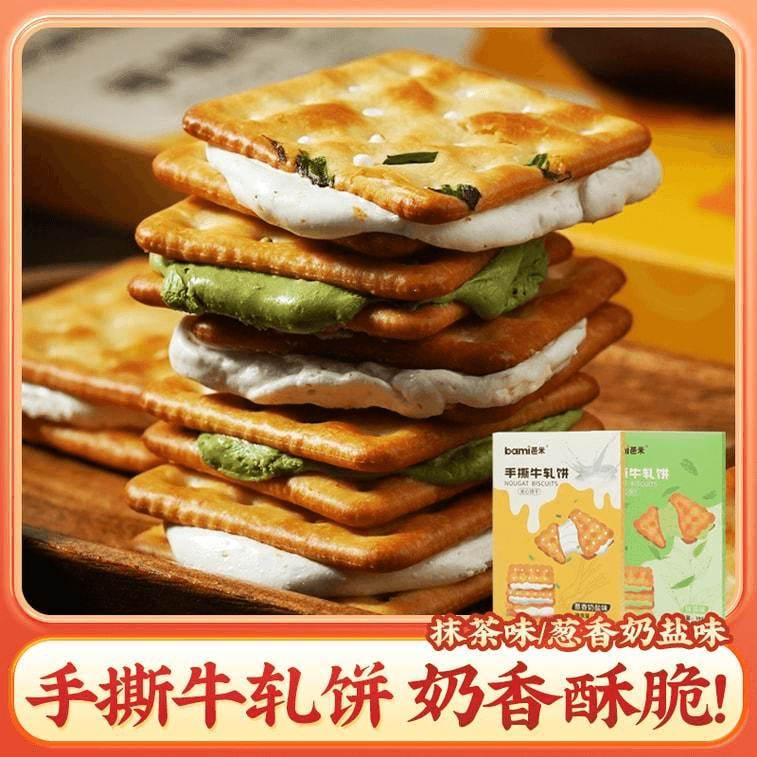 [중국 직배송] 바미 수제 누가 비스킷 - 파, 우유, 소금 맛, 고소하고 바삭한 구름처럼 부드러운 대만식 소다 크래커, 200g