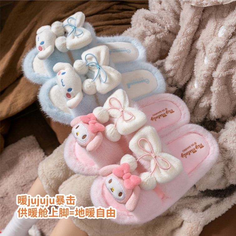[중국 직송] FOXTAIL Sanrio 플러시 슬리퍼, 미끄럼 방지 실내용 코튼 슬리퍼, 어린이용, 가볍고 통기성이 좋음 - 큰 귀 강아지, 사이즈 40-41, 1켤레