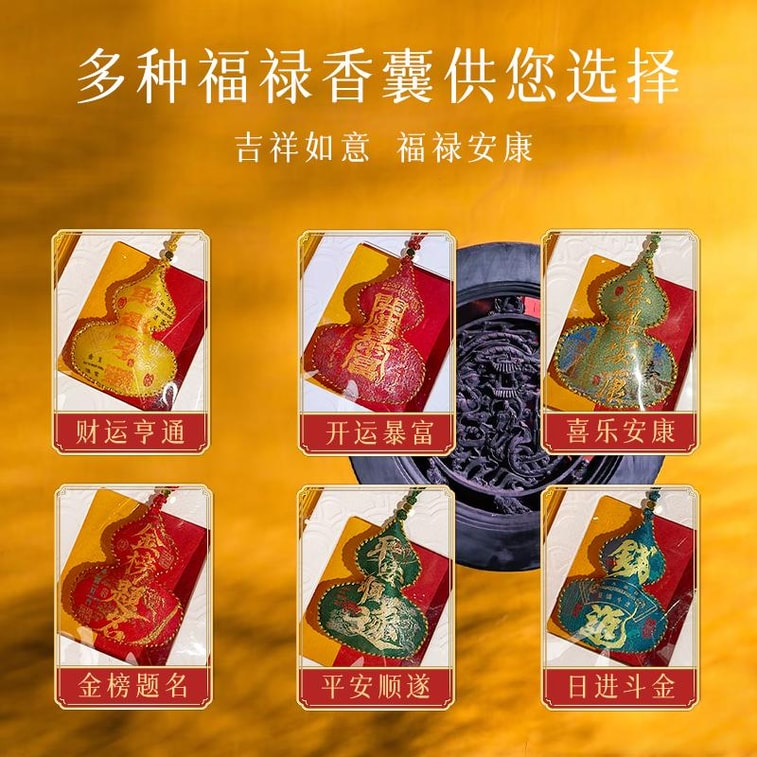 사원 축복 표주박 부적 주머니 [재물과 행운] 차량용 펜던트, 안전 부적, 수공예 보호 부적, 주머니, 휴대용 건강 행운 주머니 [축복 가루와 경전 포함]