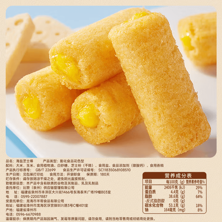 BiBiZan 비비잔 씨솔트 치즈 스틱 200g, 풍부한 치즈 맛의 쌀롤 [추억의 현미롤] [섬세하고 고소하며 바삭한 식감] | Yami