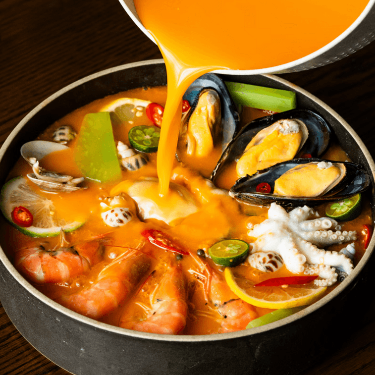 추천 재료: 연어, 새우, 조개, 면도날 조개, 에다마메, 땅콩, 메추라기 알, 쌀 국수, 아스파라거스, 곤약 국수, 브로콜리 등.