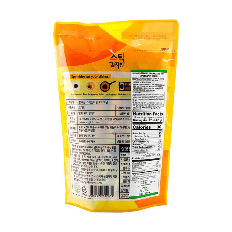 김 플레이크 스틱, 오리지널 맛, 7팩, 2.47온스 【한국 전통 간식】【사용하기 편리하고 쉽게 잘라지는 포장】