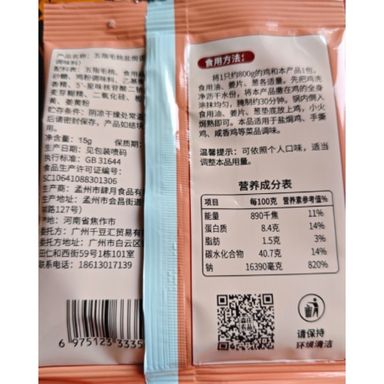 Mori Zhuang agricultural products 센좡 농산물 오지복숭아 소금구이 닭고기 분말, 가정용 양념장, 소포장, 15g x 10개입 | Yami