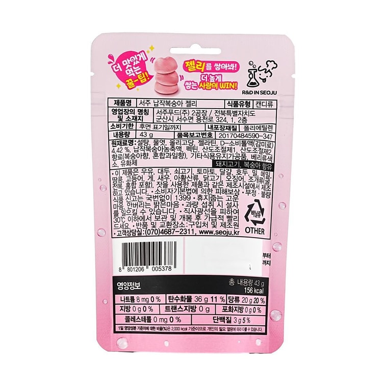 플랫 피치 젤리 구미 캔디 1.51온스【진짜 복숭아 주스 함유】