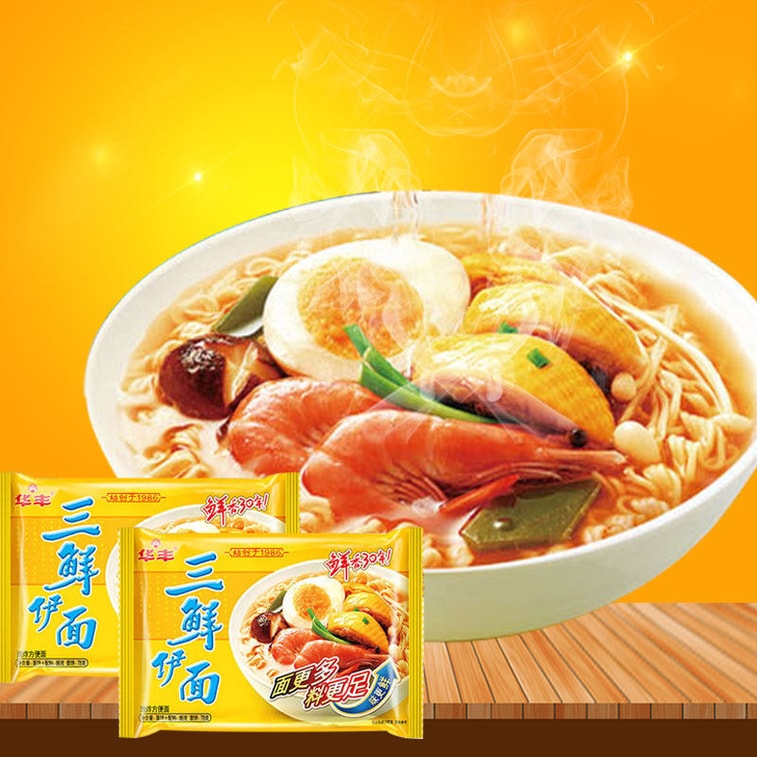 [중국 직배송] 화풍 삼단맛 즉석라면, 간편한 패스트푸드 라면, 80년대 향수를 불러일으키는 옛날식 즉석라면 [신선하고 향긋한 본연의 맛, 풍성한 면과 재료, 맛있는 풍미] 86g*3봉