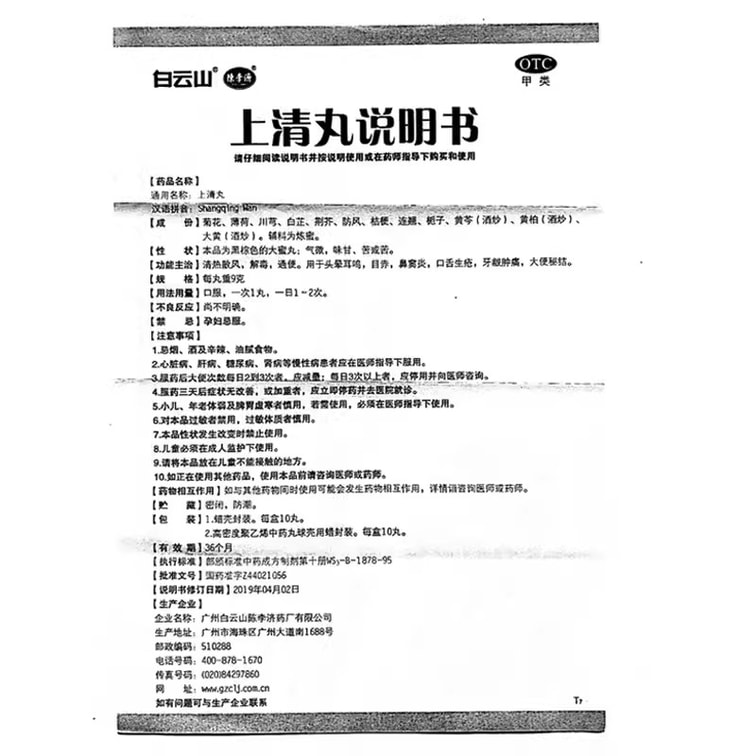 Shangqing Pill Is Suitable For Tinnitus Toothache Fever Sinusitis Stool Chest 10 Pill/Box
