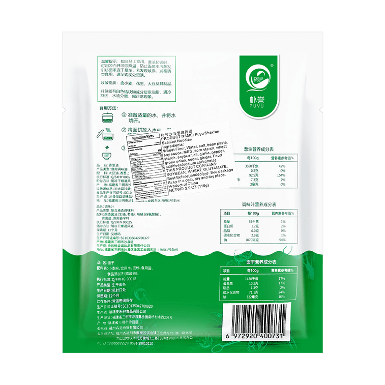 [푸젠맛] 푸위샤셴면 땅콩버터면 파맛 110g
