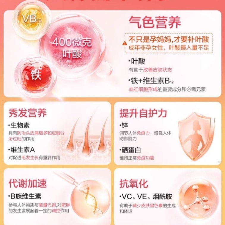 [중국 직배송] 바이헬스 여성용 종합비타민 2중 정제, 복합비타민 B, 비타민 C, 칼슘 보충제, 철분 보충제, 엽산, 160정/박스