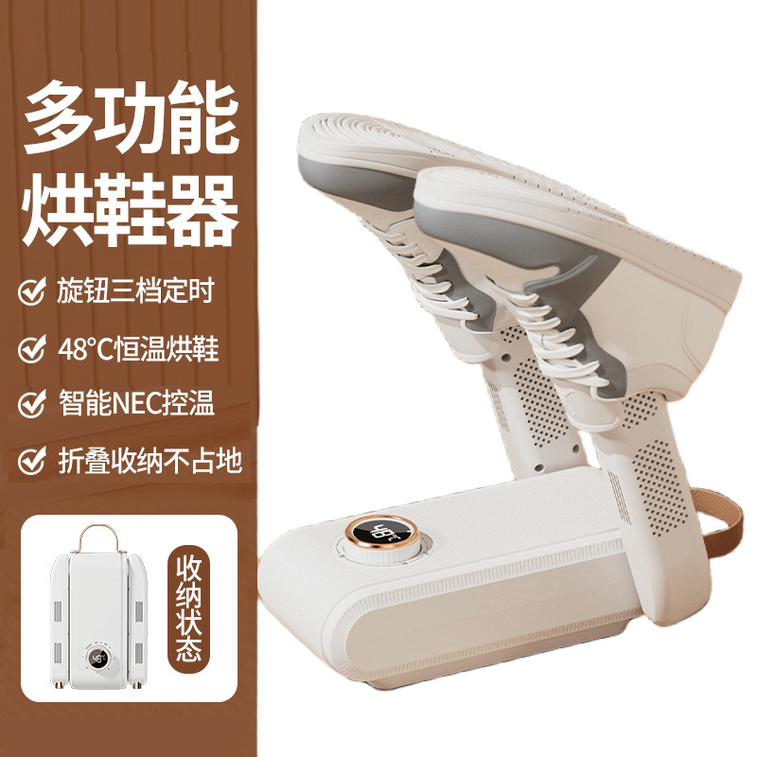 타이머 기능이 있는 접이식 신발 건조기, 가정 및 기숙사에서 사용하기에 적합 - 양팔 디자인.
