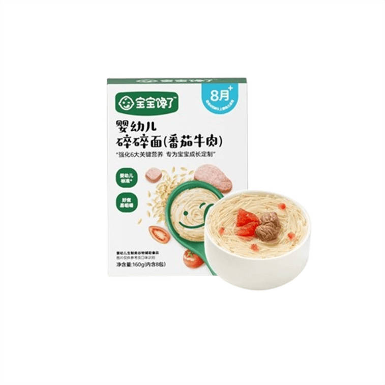 [중국 직배송] 아기가 탐식해요, 깨진 국수, 8개월 영양 이유식, 유아 및 어린이용 무염 곡물 국수, 토마토 소고기 맛, 160g/박스
