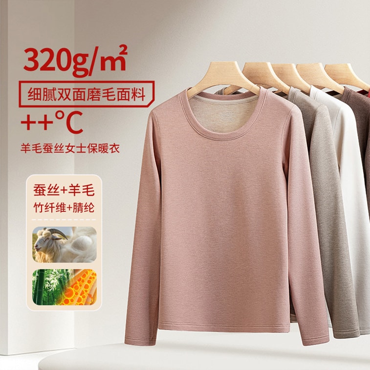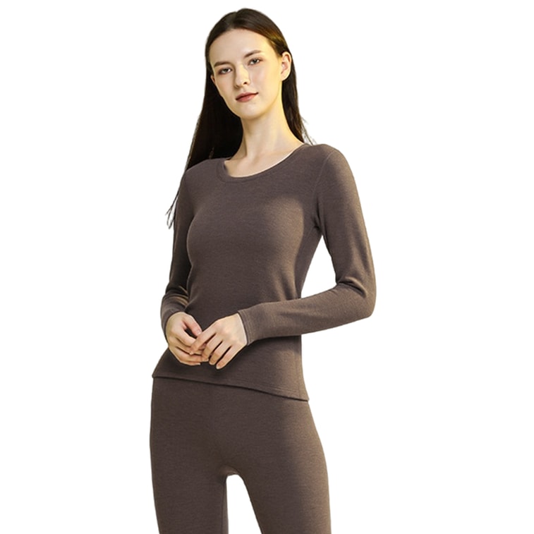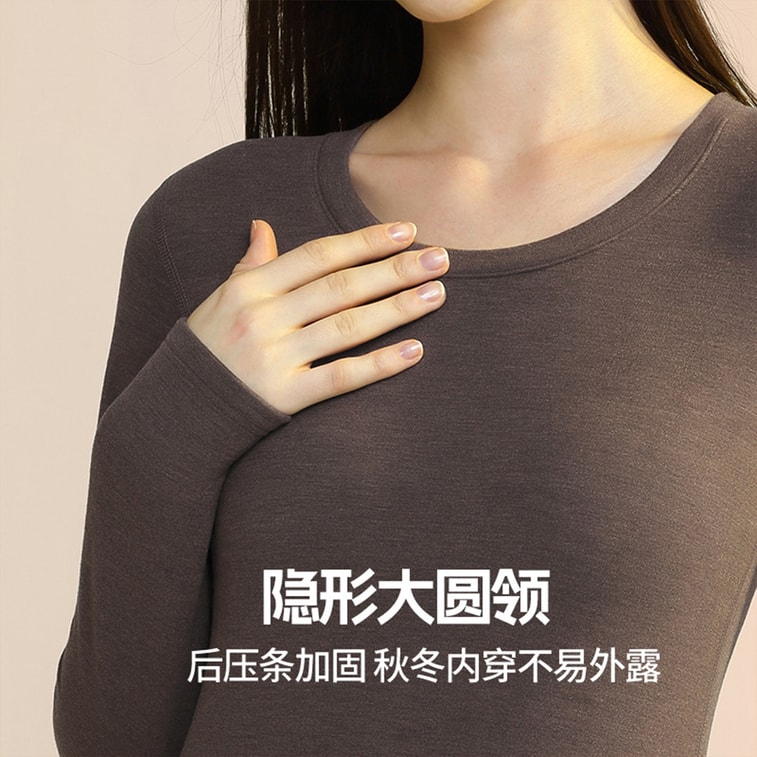 [중국 직배송] HSPM 실크 울 여성용 써멀 속옷, 가을/겨울, 플리스 안감 및 두꺼움, 아우터로 착용 가능, 라운드 넥 베이스 레이어, 코알라 브라운, XL