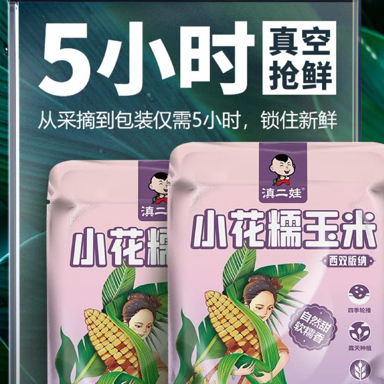 [중국 직송] 디앤얼와 윈난 시솽반나 향긋한 찹쌀 옥수수, 즉석섭취, 500g*1 봉지