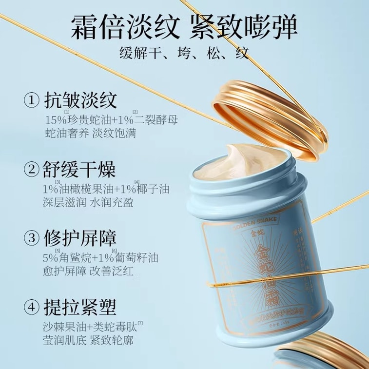 [중국 직배송] 골든 스네이크 [100년 역사의 국가 브랜드] 뱀기름 크림, 주름 개선 및 피부 재생 뱀기름 페이스 크림, 보습, 건조 및 갈라짐 방지 핸드 크림, 남녀 공용 스킨케어 제품, 45g