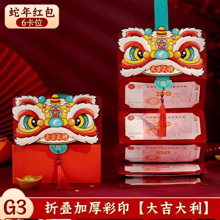 [중국에서 온 다이렉트 메일] 뱀의 해 빨간 봉투 세로 인감 2025 새해 3차원 접이식 새해 지갑 새해 창의적 개인화 만화 6 카드 슬롯 행운을 빌어요*1개