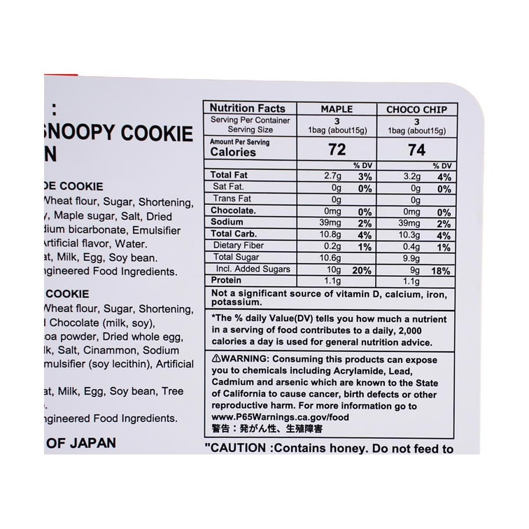 스누피 쿠키 한정판 선물용 틴, 초콜릿 & 메이플 맛, 3.2온스 【사랑스러운 기념품】