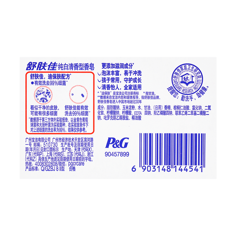 세이프가드 수딩 비누, 배스 & 핸드 클렌징 바, 퓨어 화이트 향, 100g
