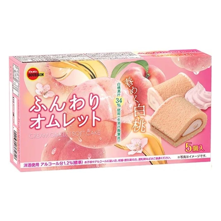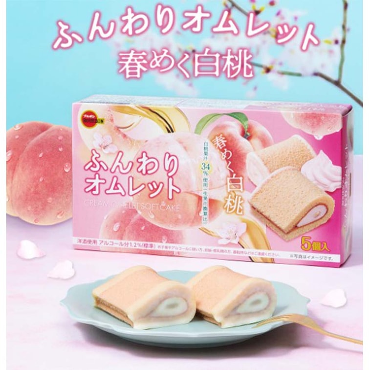 [일본 직배송] 버번 소프트 케이크 롤, 봄철 백도맛, 5개입