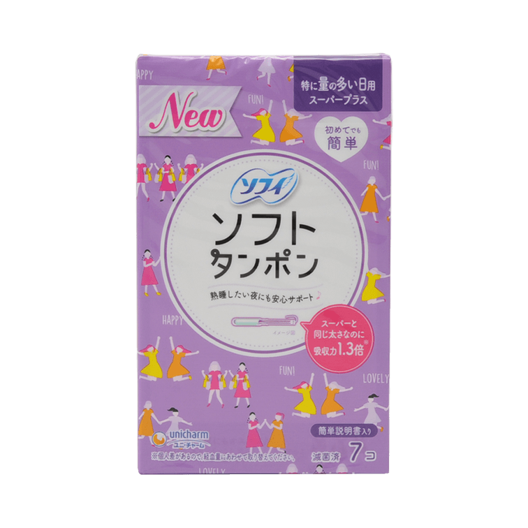 UNICHARM||SOFY 편안하고 부드러운 탐폰 (신품 및 기존 포장 랜덤 발송)||특별 데일리용, 다양한 타입, 7개입