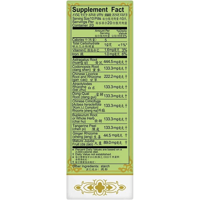 미국 Zhiri Pharmaceutical Foci Buzhong Yiqi 알약 200정