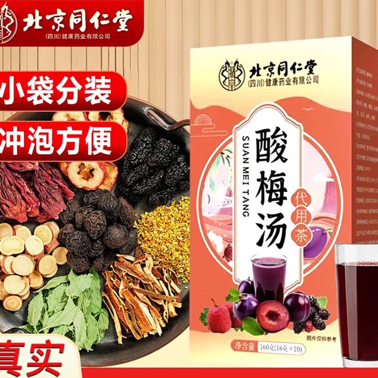 베이징 통런탕 사워플럼차, 산사나무, 말린 매실, 뽕나무, 감초, 계화, 민트, 오렌지 껍질, 과일차, 말린 과일 조합 애프터눈 티, 민트 함유, 10개 스틱/박스