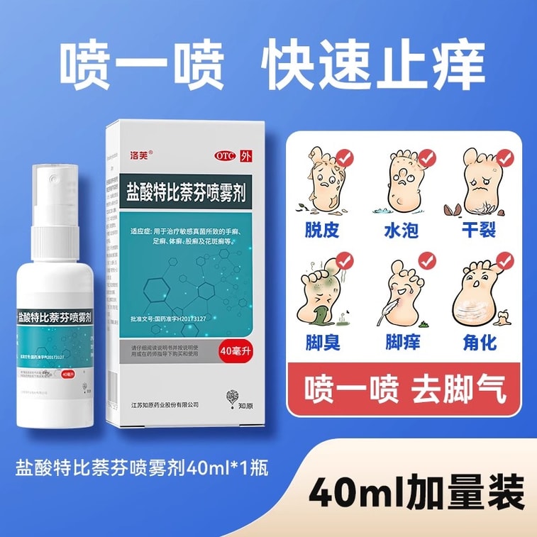 [중국 직송] 로푸 테르비나핀 염산염 스프레이(족부 백선 치료, 완화, 가려움, 각질, 항균, 발 냄새 완화 연고 40ml)