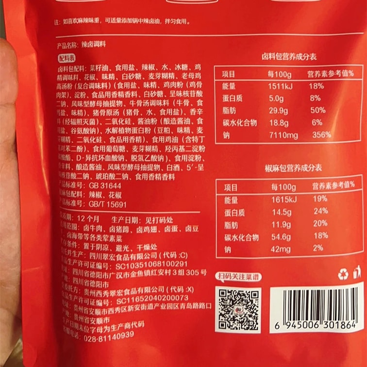 [중국 직배송] 추이홍 매운 조림 양념 235g, 향긋하고 매콤한 맛, 숙성 육수를 넣어 만든 양념으로 가정에서 고기나 돼지뼈찜 요리에 사용하기 적합합니다.