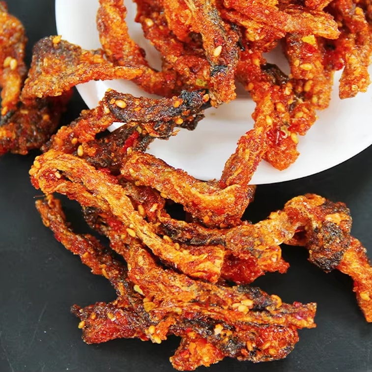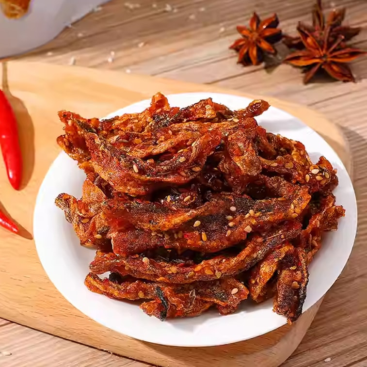 슈이팡 매운 생선 껍질 튀김 100g - 바삭하고 맛있는 인기 해산물 간식으로, 사무실에서 일하거나 드라마를 몰아볼 때 딱 좋습니다.