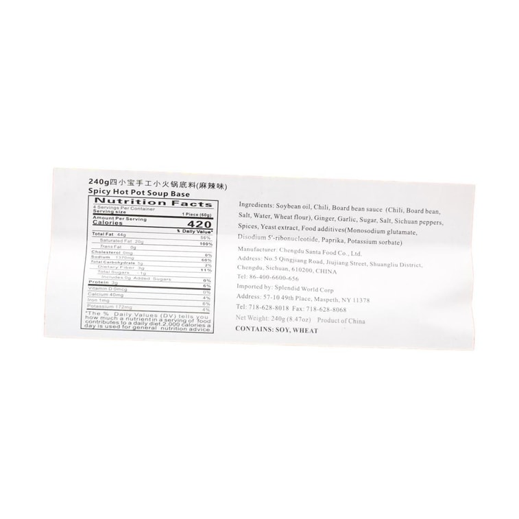 매콤한 핫팟 수프 베이스, 8.47온스