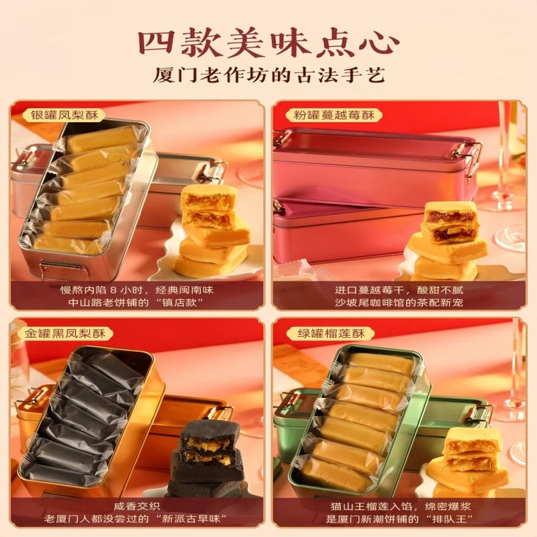 [중국 직배송] 장펑지 [설날 상품] 빨간 파인애플 케이크 선물 상자, 화려한 유리병 포장, 740g, 샤먼 특산 과자, 설날에 친척과 어르신을 방문하실 때 선물하기 좋습니다.