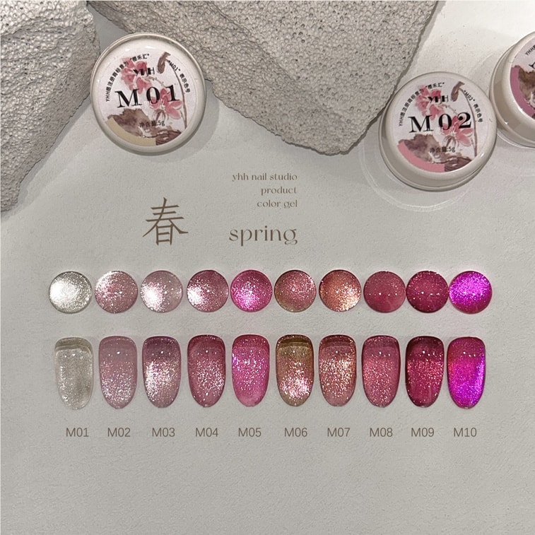[중국 직송] 잉허네일 [봄, 여름, 가을, 겨울 M 시리즈] 플래싱 캣츠아이 젤 네일 폴리쉬 세트 (40가지 컬러) 진위안춘 로터스 M01-M10 네일 컬러 젤 (5g x 10병)