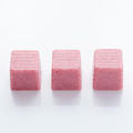 큐브 모양의 초콜릿은 동결건조된 딸기가루로 만들어졌으며 달콤하고 신맛이 나는 맛이 납니다.