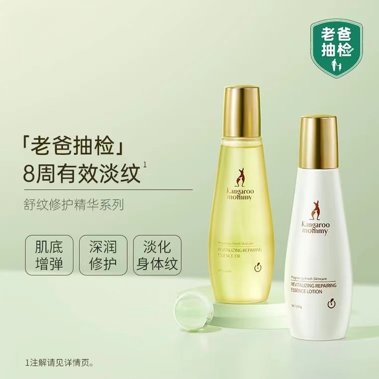 [중국에서 직접 우편] 캥거루 엄마 아빠 무작위 검사 임신 오일 수리 배 주름 지방 주름 퇴색 방지 바디 로션 스킨 케어 제품 오일 145ml + 로션 145g