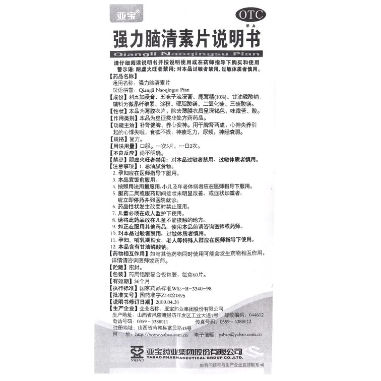 Strong Brain Qingxin tablet For Insomnia Neurasthenia Palpitation Urination Loss Of Appetite 60 Tablets/box