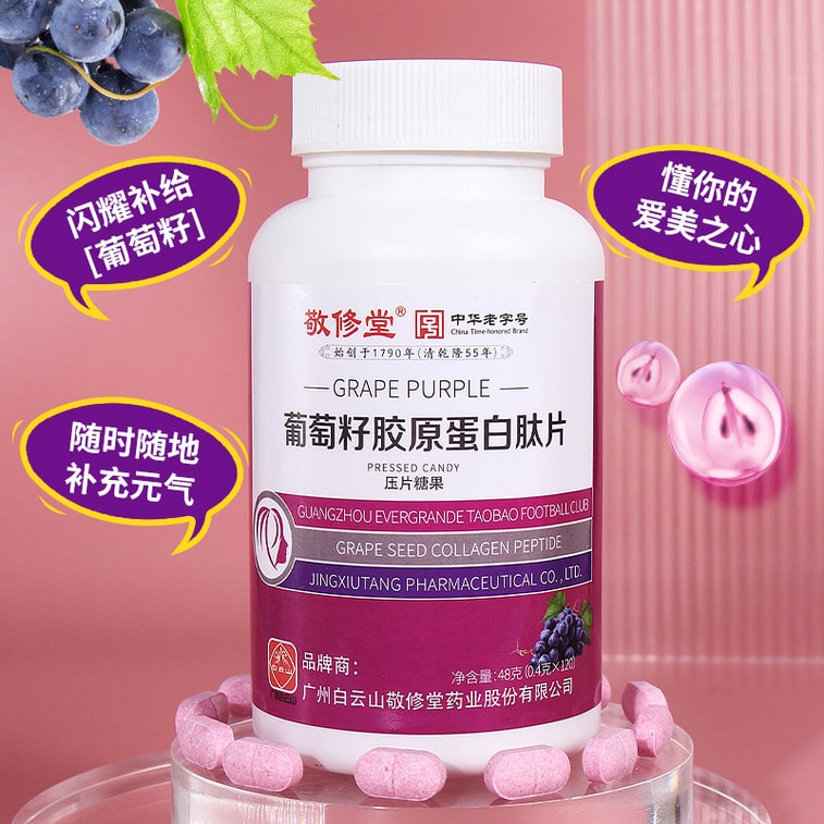[중국발 다이렉트 메일] 백운산 경수당 포도씨 콜라겐 펩타이드 2병 (240정) 정제 캔디 과일 콜라겐 정제