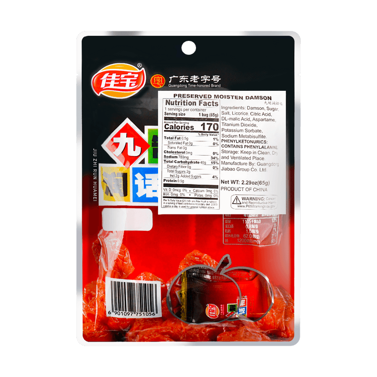 달콤하고 신맛이 나는 설탕에 절인 보존 과일 자두 자두 스낵, 광동 특산, 2.29온스