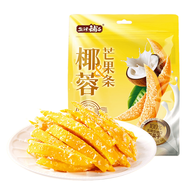[중국 직배송] 옌진샵 코코넛 망고 스트립, 동남아시아산 신선한 망고로 만든 상큼하고 달콤하며 부드럽고 쫀득한 망고 건과일 스낵 [새콤달콤한 과일 맛, 풍부한 코코넛 향] 100g/2팩 | Yami