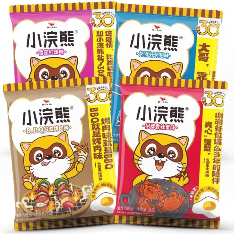[중국 직송] 유니프레지던트 리틀라쿤 크리스프 누들 (요리의 달인) - 어린 시절 추억의 기숙사 간식, 혼합 맛, 35g x 10팩