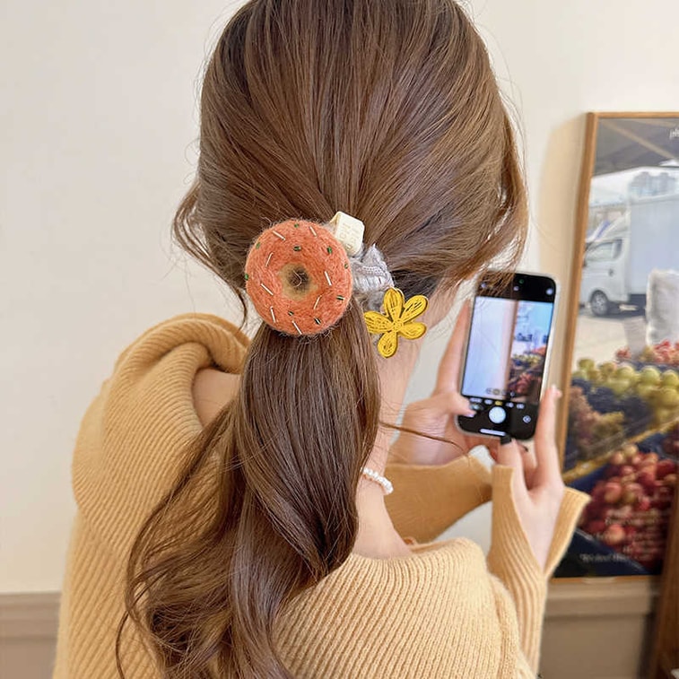 🍪 Sweetheart Cookie Knitted Hair Hoop Khaki Telephone Wire Head Rope High Grade Tie Hair Uncut ✨ 1 piece