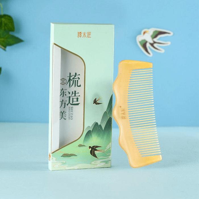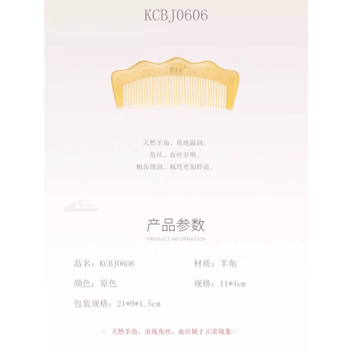 [중국 직배송] 탄무장 정품 천연 양뿔 빗 KCBJ0606 여성용 두피 경락 마사지 빗, 맞춤 제작 가능 *1개