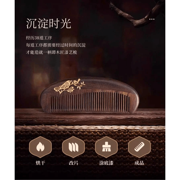 [중국 직배송] 탄무장 선물 상자 옻칠 빗 (여성용 장발 교정 및 경락 마사지용) - 천연 나무색 *1개