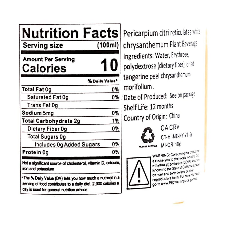 귤껍질 & 항저우 국화 허브차, 13.5 fl oz *6【6팩】【무설탕 무지방 저칼로리】