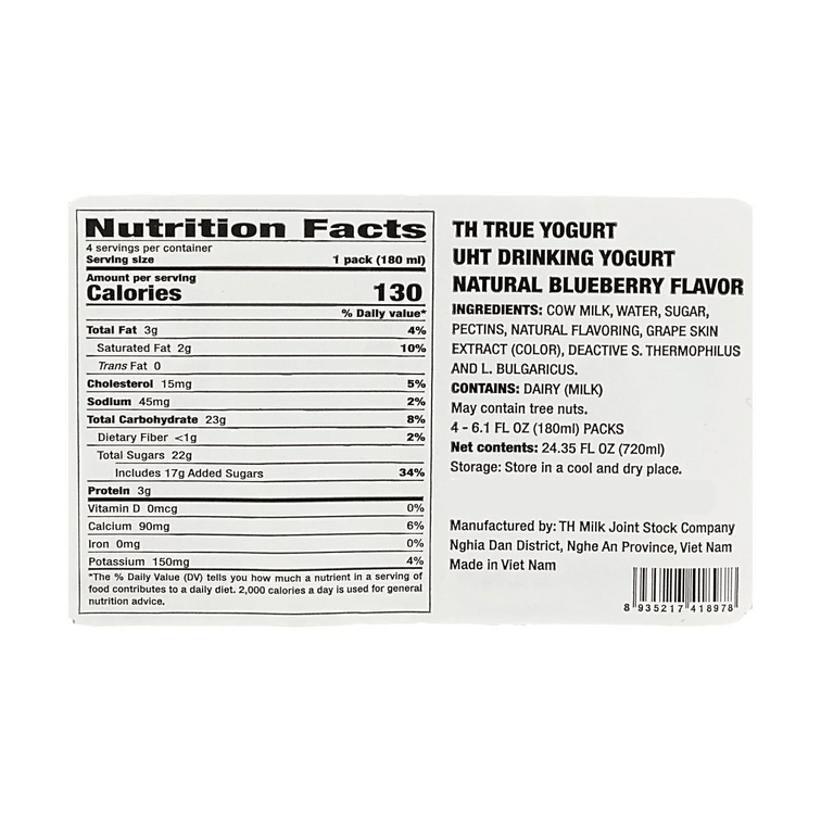 요거트 UHT 음료, 블루베리 맛, 4.61 fl oz *4팩