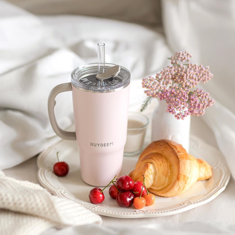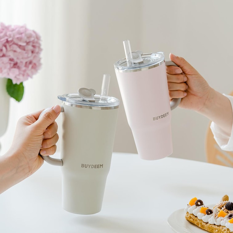 점보 빨대 진공 단열 머그컵 750ml 피기 핑크