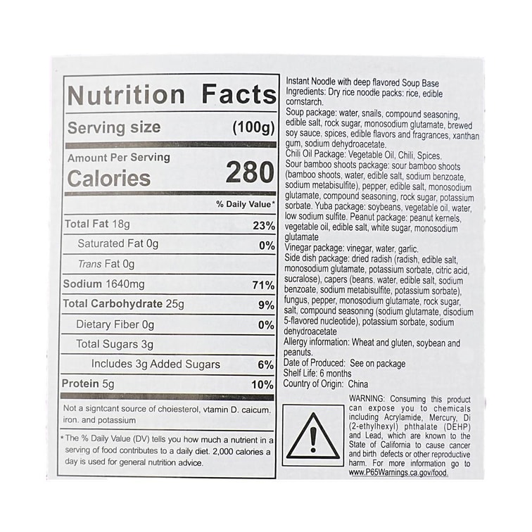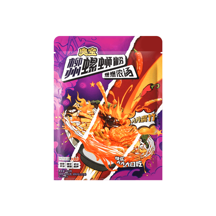 두꺼운 수프 류저우 달팽이 쌀 국수, 굵은 유바 포함, 11.64oz【Yami 독점】
