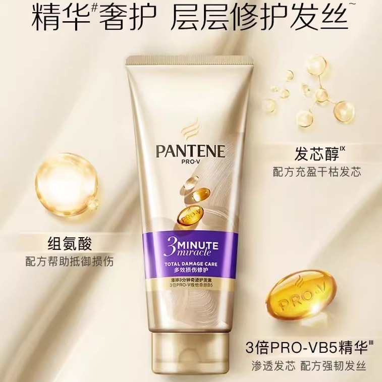 [중국 직배송] 팬틴 3분 미라클 컨디셔너 (미국) - 헤어 마스크 등급, 건조하고 손상된 곱슬머리를 수분 공급과 손상 복구로 부드럽고 윤기 있게 가꿔줍니다. 180ml/병 (보라색) | Yami