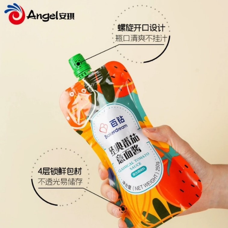 엔젤 토마토 파스타 소스 250g (스크류형, 간편 압착 병) - 가정용 이탈리아 파스타 소스, 토마토 소스 조미료, 감자튀김 디핑 소스 - 엄선된 재료 - 클래식 이탈리아 풍미 - 서양 요리 조미료, 주방 조미료